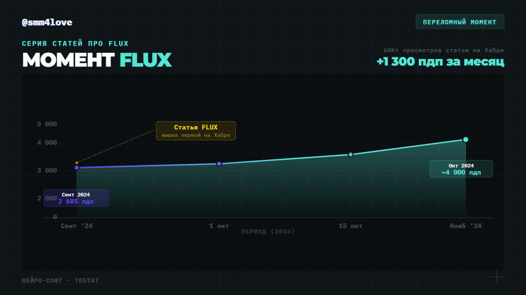 А статья про FLUX набрала 60 000+ просмотров на Хабре.