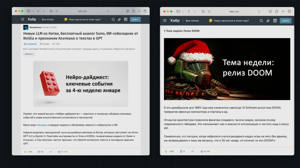 Стало понятно: нужен регулярный формат, который работает без привязки к новинкам. Так появились еженедельные нейро-дайджесты на Хабре.